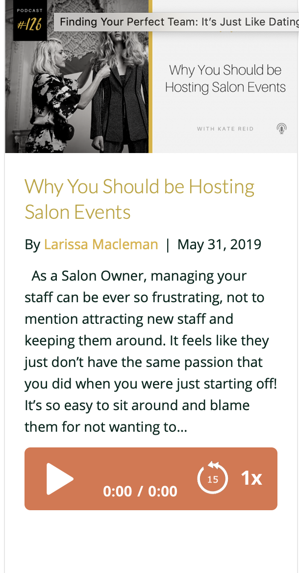 THE SALON COLLECTIVE: WHY YOU SHOULD BE HOSTING SALON EVENTS! November 22, 2019Kate Reid https://salonownerscollective.com/episodes/